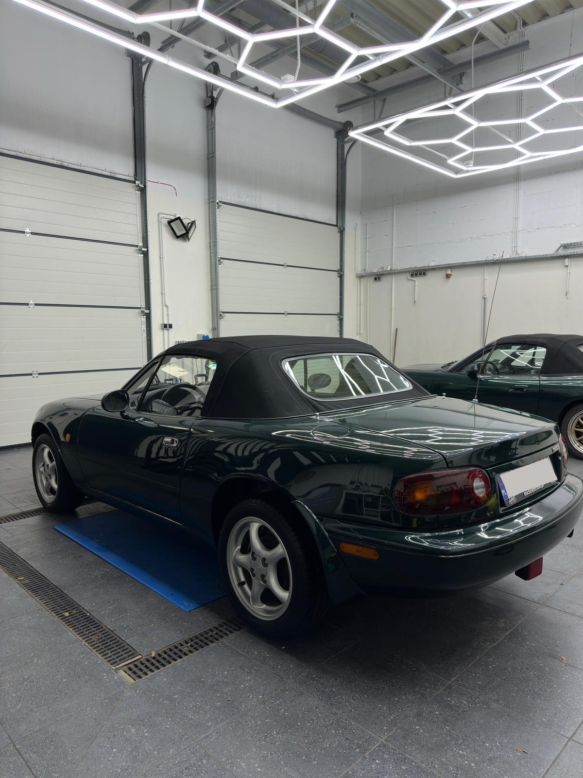 Zachovalý vůz. Vybaven výškově nastavitelným podvozkem, volantem MOMO a střechou mohair soft top. Velmi udržovaný interiér, podvozek vozu v dobrém stavu, barva Montego Blue.