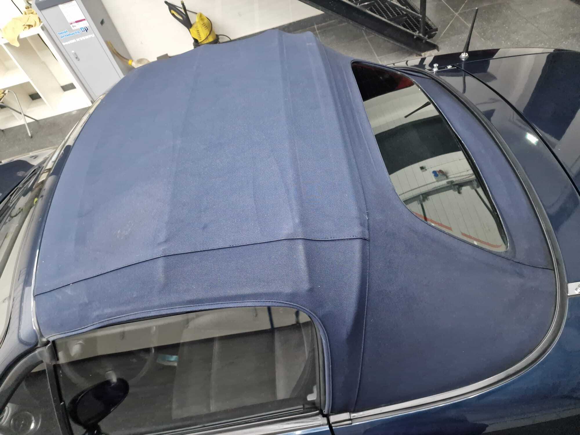 Vůz v barvě Montego Blue, po mechanickém servisu. Vyžaduje drobné opravy laku. Vybaven mohérovou střechou (mohair soft top) a chromovaným nosičem zavazadel.