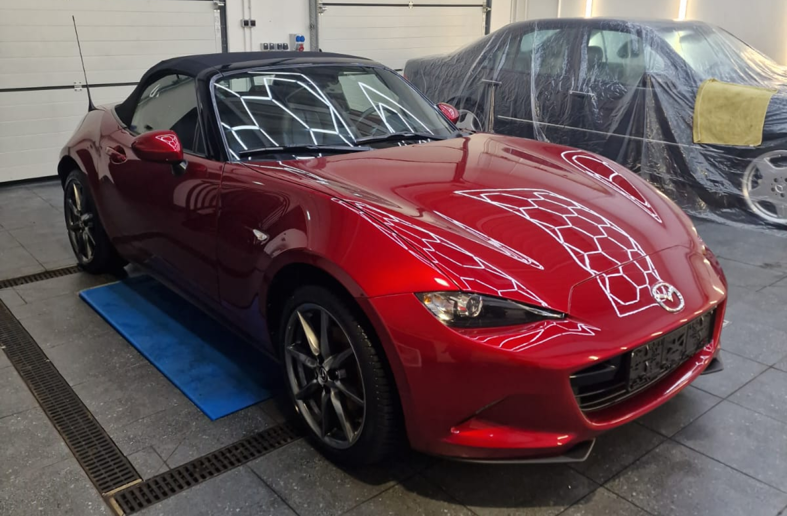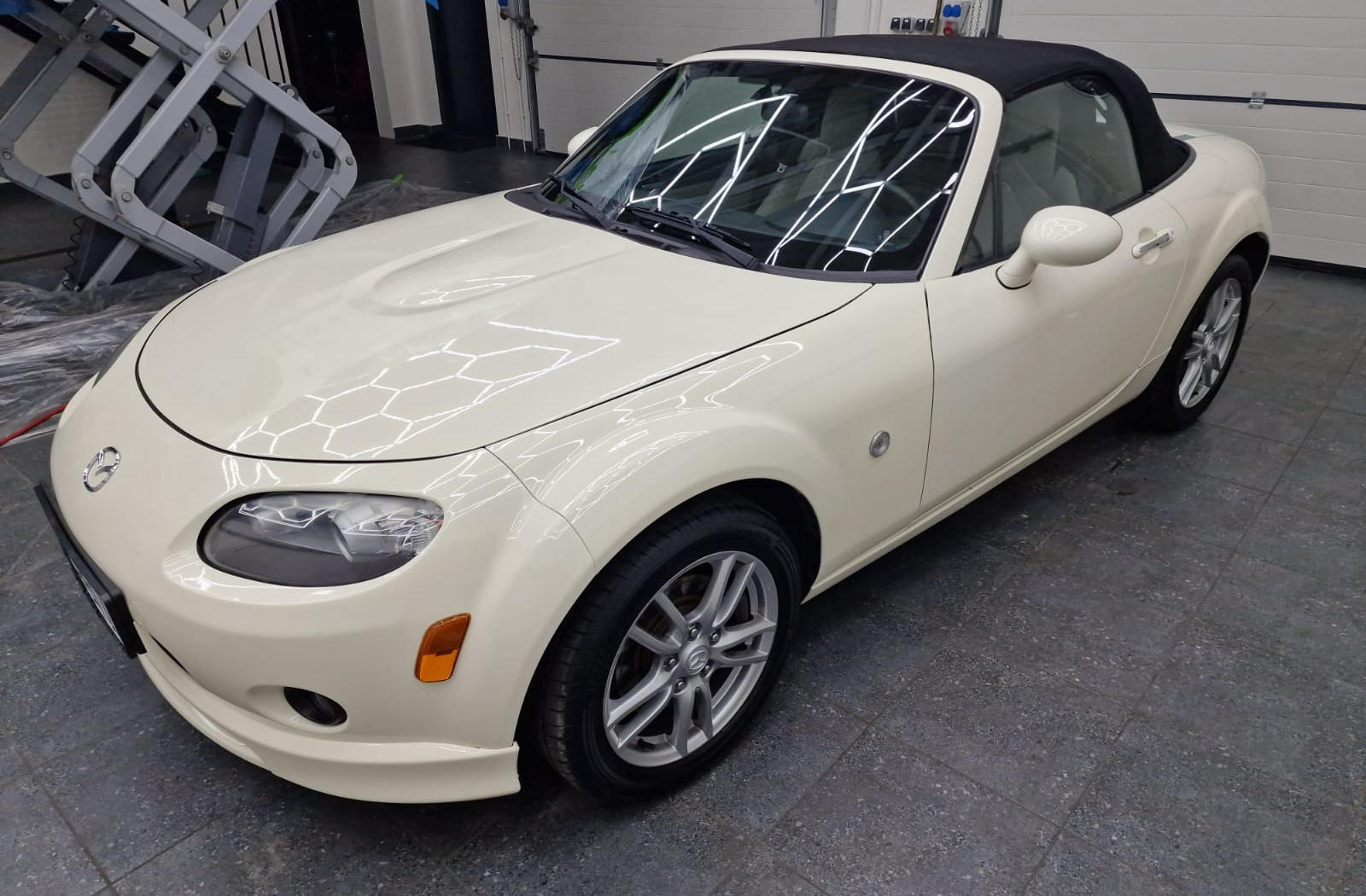 Vůz v novém laku z roku 2024. Vybaven mohérovou střechou (mohair soft top) a koly Enkei. Celkový stav dobrý.